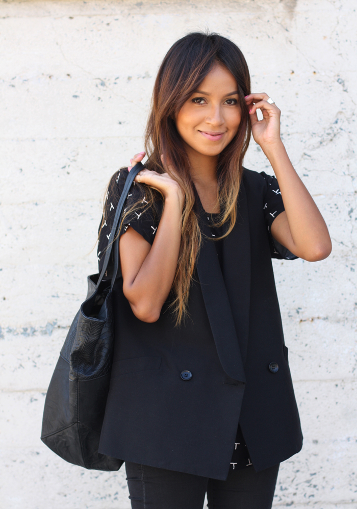 Vest: BCBG | Blouse: F21 | Jeans: Gap | Bag: Joie | Sneakers: Isabel Marant
