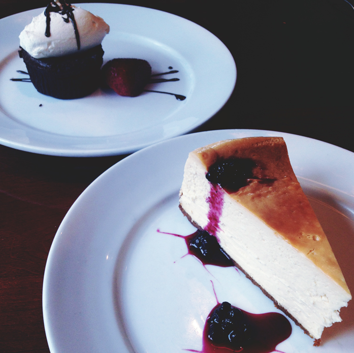| Delicious dessert at PorterHouse; NYC cheesecake + flourless chocalate cake with ice-cream! |