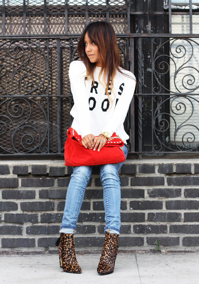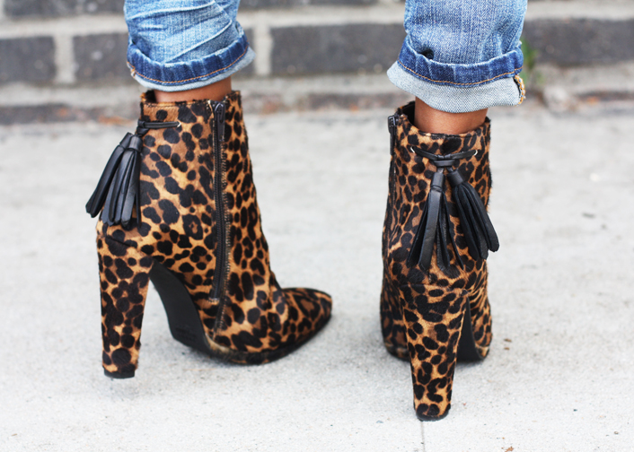 oh, pairing it with a couple of my fave details like these gorgeous feline print booties (umm, totally perfect for fall and such a staple item!) and the red suede studded bag gave my look just the right amount of coolness. Craving fall weather to come back again now, ugh.