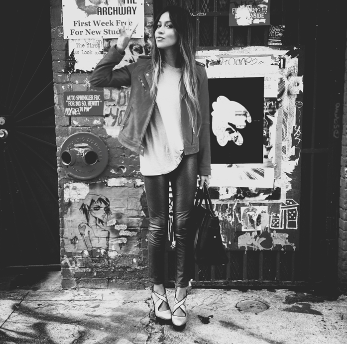 Gimme a leather motor jacket, some leather skinnies and some pretty sparkly wedges and I'll be the happiest girl, ever. This look came together in five minutes, literally- (love when that happens!).