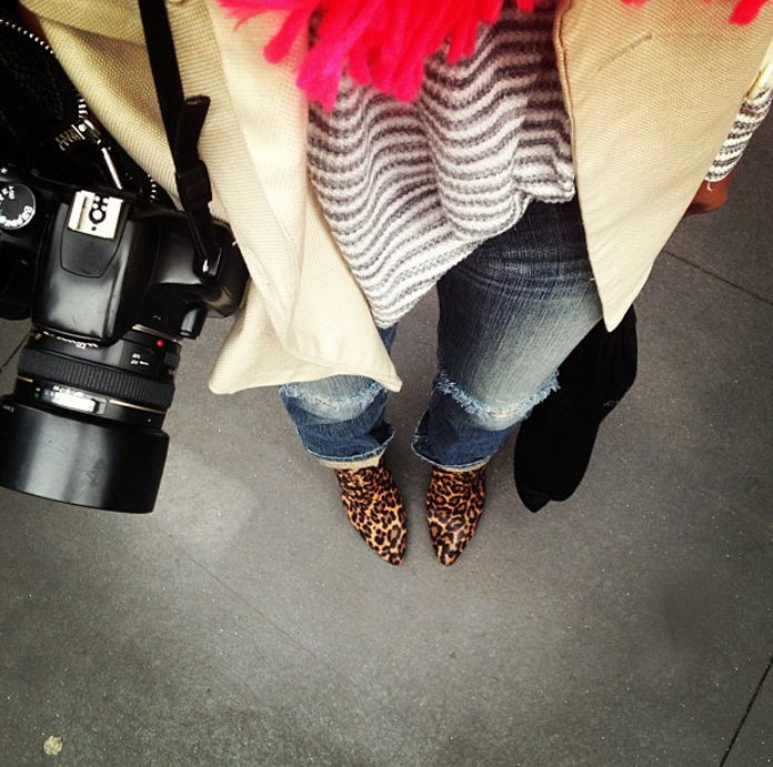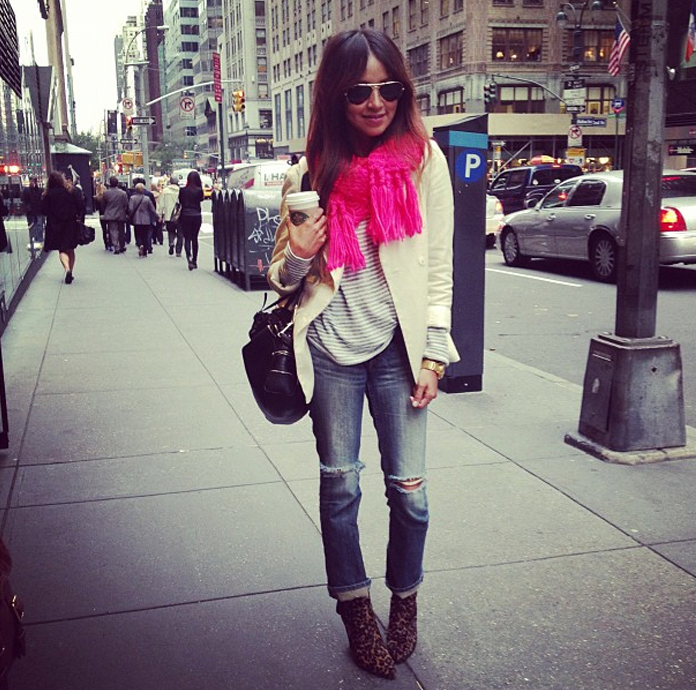 Quick hello from New York! Yesterday's look was comfy and warm, with layers, prints and rips!