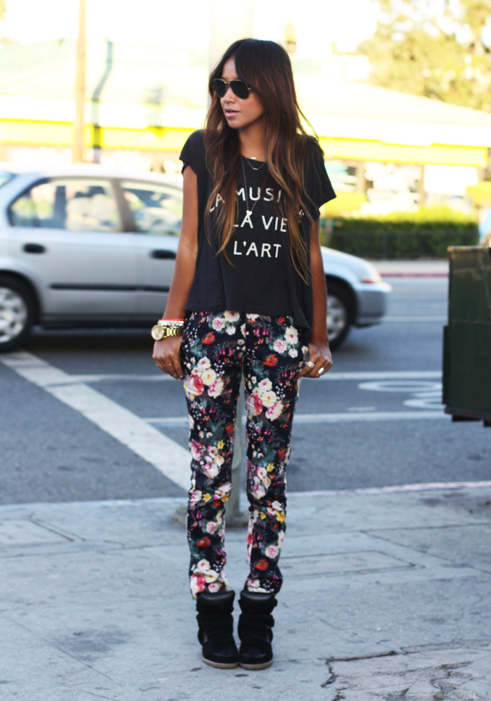 Totally diggin' these cool floral pants with zippers in the back to add some edge