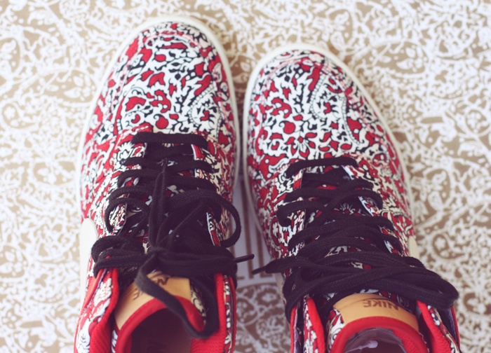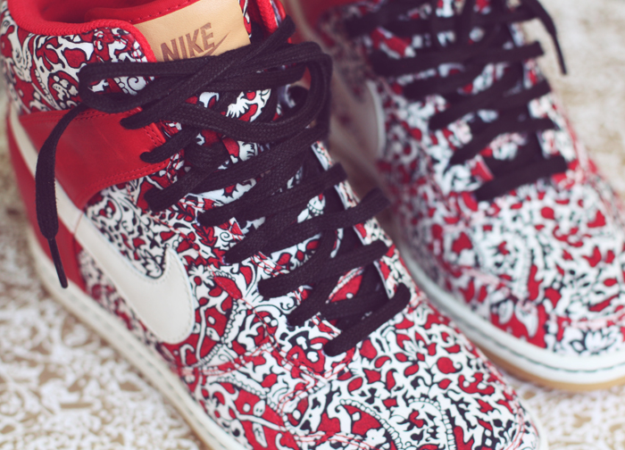 opened the box and found a gorgeous pair of Nike x Liberty dunk sky high sneakers for their SS '12