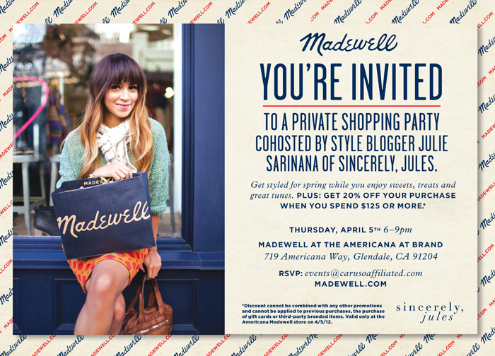 So excited to invite you guys to join me at Madewell in the Americana at Brand for a fun evening