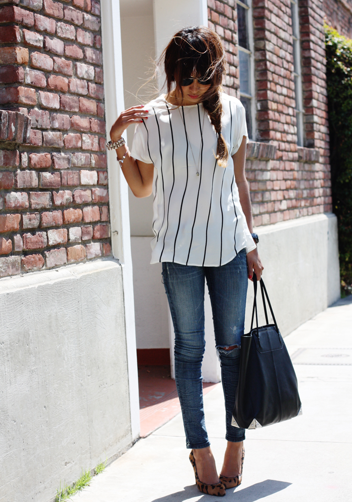 Blouse: Madewell // Jeans: from Nordstrom // Pumps: Madewell // Bag: Alexander Wang // Triangle necklace: Albeit jewelry