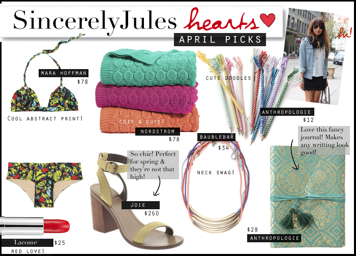 items/designers, etc. I thought I'd share some of my current picks for the month of April-