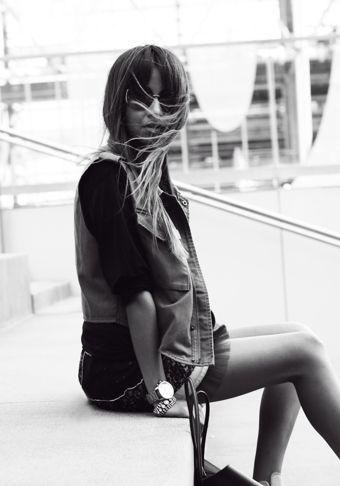 Feelin' a little cool in my Cons and vest that toughened up this pretty lace skirt.