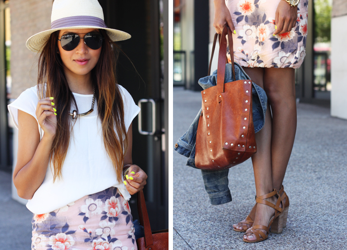 Blouse & Skirt: H&M | Necklace: Gabriela Artigas | Heels: Steve Madden | Bag: Vin Baker | Jacket: Madewell