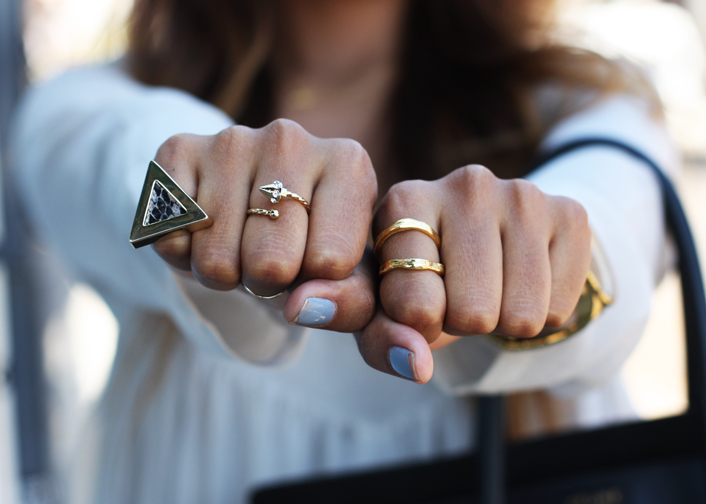 | Wear all your have rings at once! L to R: Karla Deras x Roman Luxe, Anarchy Street, Gorjana |