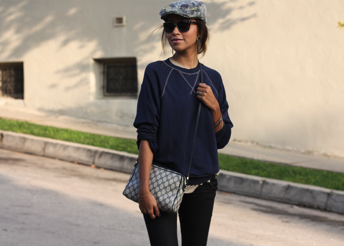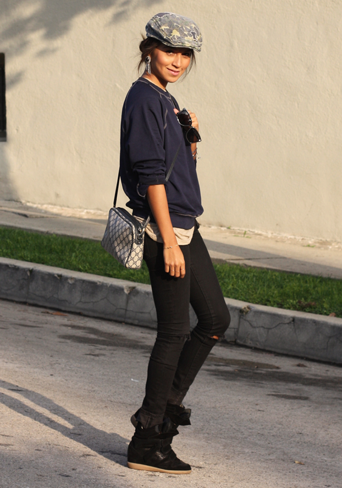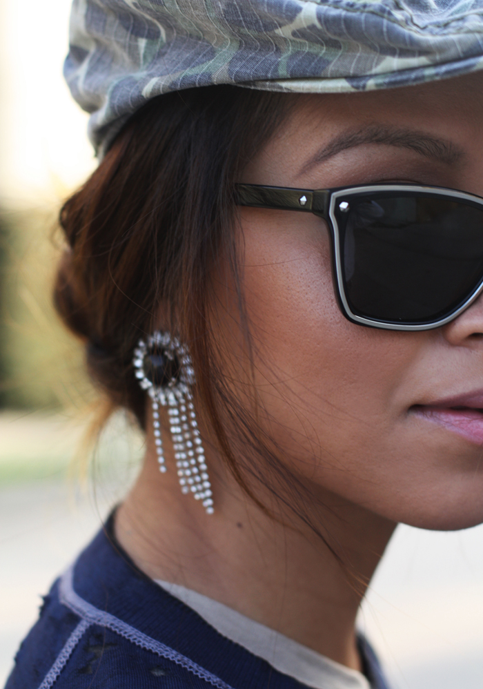 $ 0 0 It was hat day kinda day yesterday but to glam it up,. I whipped out my fancy clip on earrings that I got from Mango when I was in Ibiza a couple of months ago! The retro shades definitely completed the whole look! Casual-cool. You know my style.Sweater: Gregory Quinn (men's) | Tee: Zara | Jeans:Kova & T(DIY rips) | Sneakers: Isabel Marant | Bag: Vintage Gucci | Earrings: Mango | Shades:Rebecca Minkoffphotos by my dadHave a happy and fun weekend!