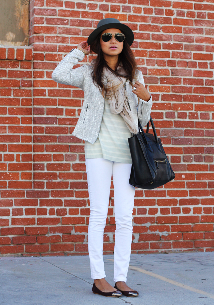 Before I left LA to come to Italy, the weather went from sunny and nice to a chilly cold... nothing too cold where it's unbearable though, so I could still wear a light jacket and scarf. I don't normally wear super white jeans, but these are just too comfy and classic for me not to wear.