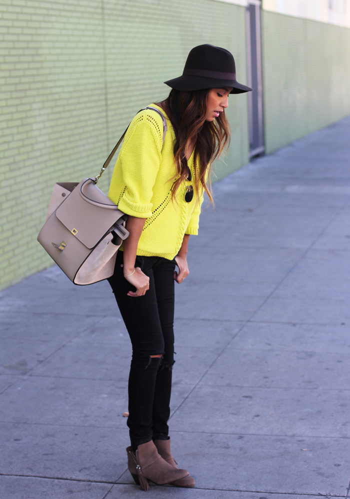 Sweater:Cynthia Vincent (similar here, here + here) | Jeans: Kova & T (DIY rips) | Booties: Coach | Hat: Cotton On ( similar here + here) | Bag: Celine Trapeze