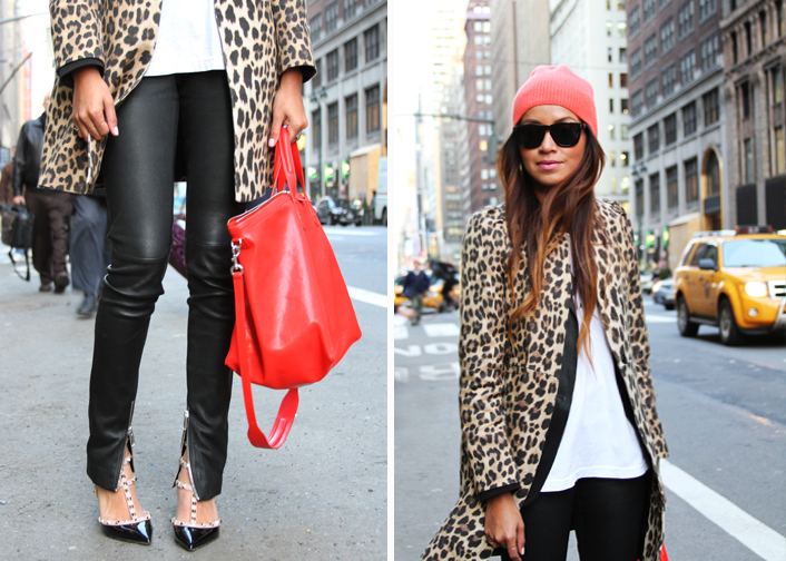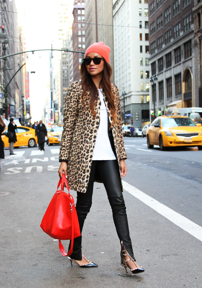 $ 0 0 Leather skinnies: Anine Bing (size xs) | Tee: WhoWhatWear | Coat: Zara (similar here, here and here) | Beanie: Marc Jacobs | Heels: Valentino | Bag: Marc Jacobs | Sunglasses: Marc Jacobs