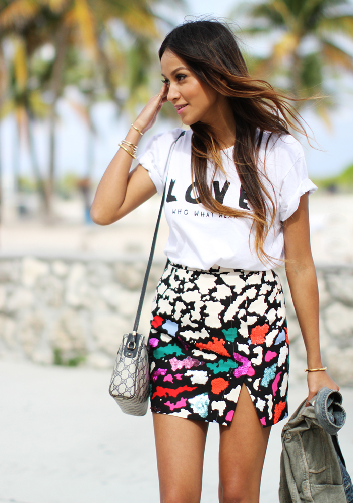 I ended up wearing this pretty skirt (so Miami appropriate!) for the show on Saturday, and thought I'd pair it with something a little more casual, so the tee definitely helped.