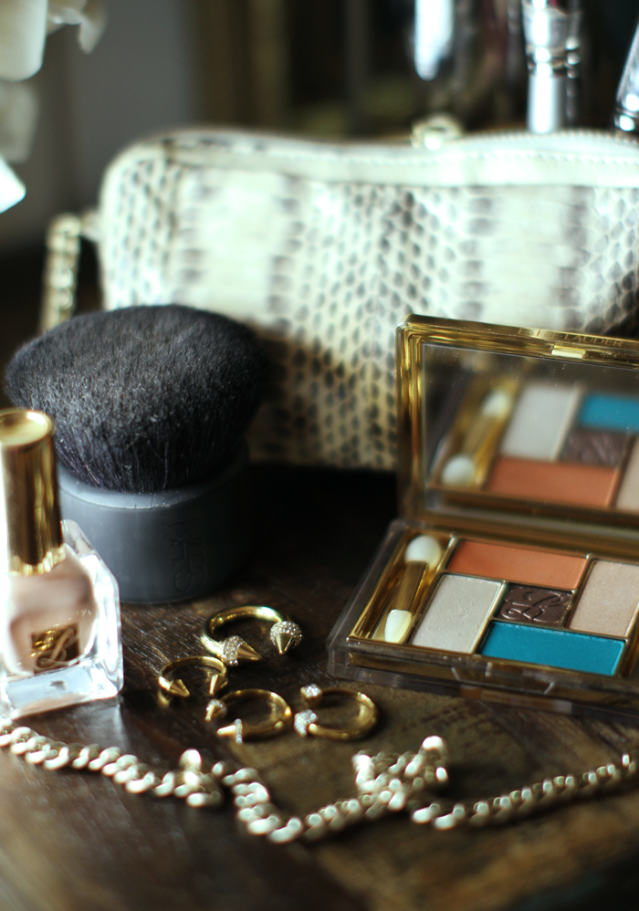 | You have to have good brushes to apply your make-up with; I know they can be a bit pricey but it will make all the difference when you start applying your make-up. Invest in a couple of good ones; like powder, blush and foundation brushes. Above is my favorite-NARS Botan brush. It's a kabuki brush that's perfect for applying powder, blending and buffing! I'm not really of an eyeshadow type of girl because I don't know how to successfully achieve a cool look with eyeshadows. However, I do own a few palettes because I do like to just add a bit of nudes/browns to my lids and add a brown liner for a fresh looking day-time wear smokey eye. I do wear lighter shades underneath my brow for some definition and glow. This Estee Lauderpalette has been my go-to for a golden touch on my eyes. The teal and orange I'll only use for special events or when my best friend is around to apply it! |
