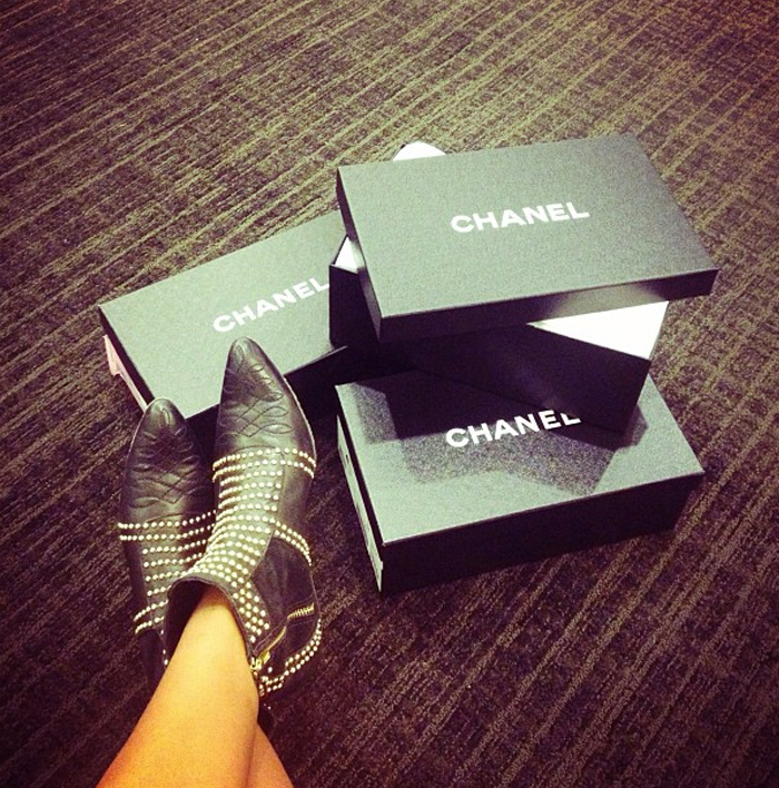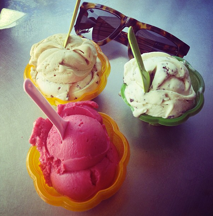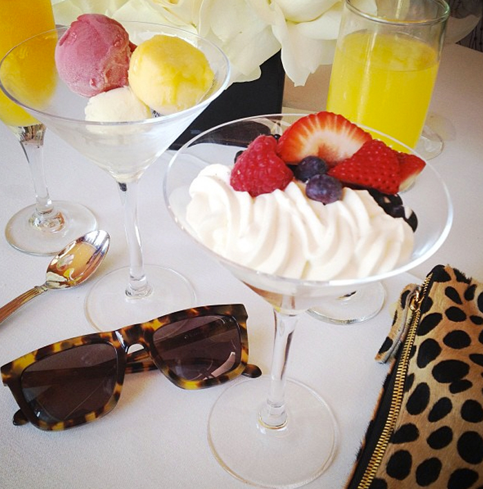 | Enjoying delicious dessert for the preview of Net-a-porter's spring collection. |