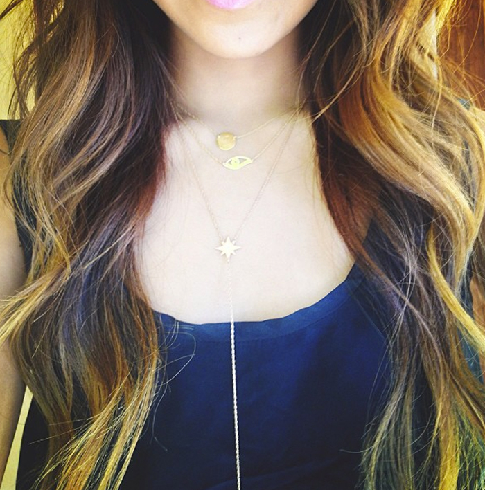 | Wavy hair day! Sportin' my layered Jennifer Zeunernecklaces. |