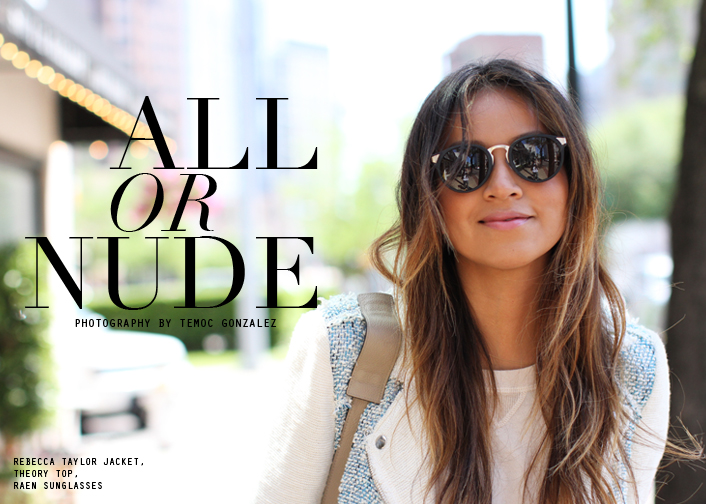 Jacket: Rebecca Taylor ( in grey/black here) | Pullover: Theory | Leather shorts: J Brand | Heels: Charles Jourdan | Shades: Raen | |