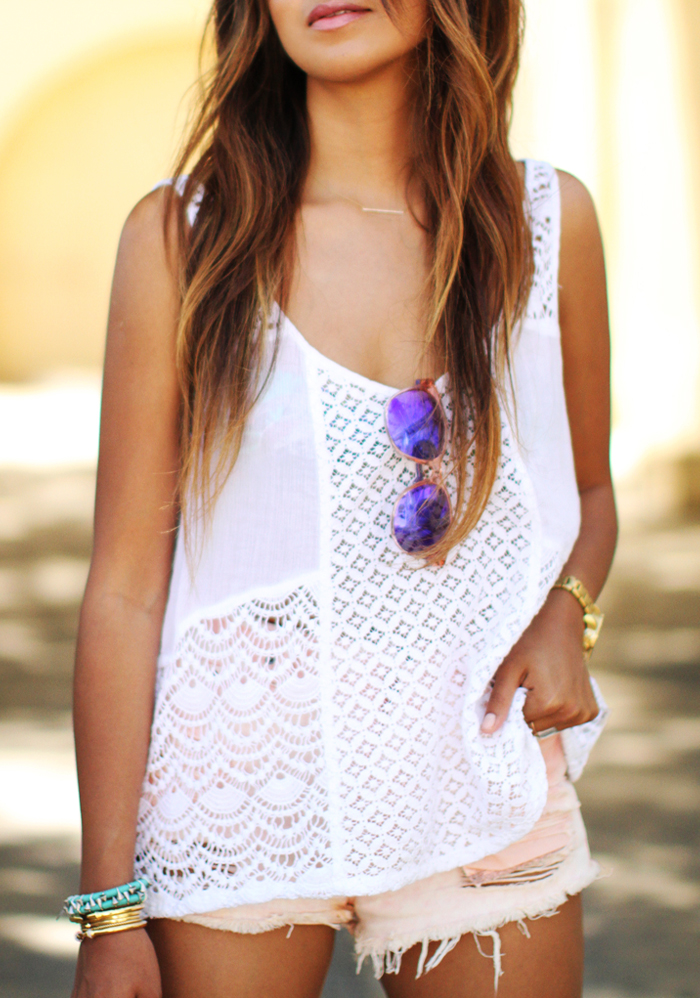 | the blush tone color of these shorts were cute against a white, airy tank! Tip: Add color with your bracelets! |