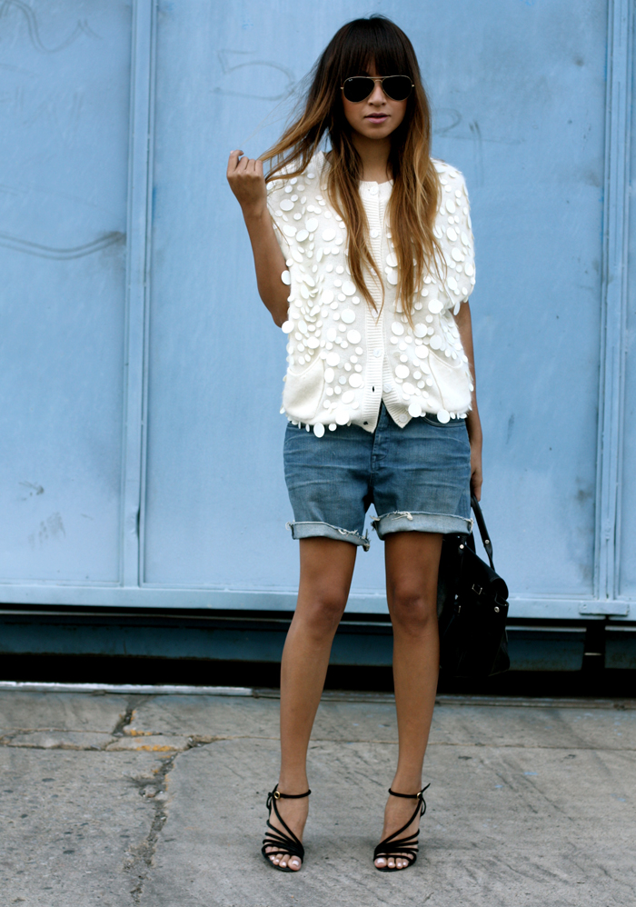 Shorts: Helmut Lang (similiar here) | Sweater: Vintage | Heels: Pierre Hardy | Sunglasses: Ray Bans | Bag: 3.1 Phillip Lim