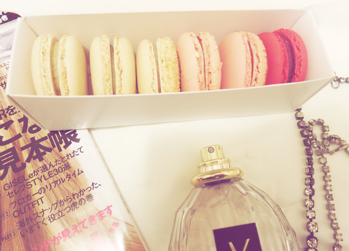Zara heels, YSL Parisenne parfum, Macarons from Lette, Vintage necklaces